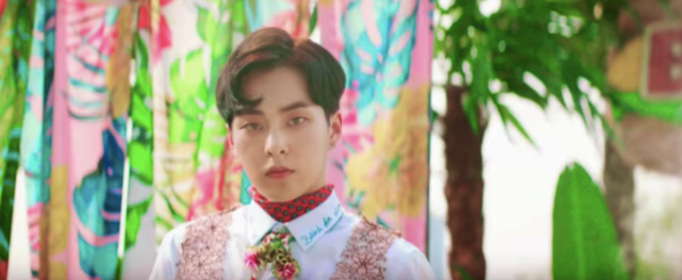 As I was watching I was silently cheering about his appearance. Like we’ve seen in the other teasers Chanyeol is also donning a floral pattern shirt. His hair is what appears to be a variety of soft purple, blue, and pink. This could have turned out for the worst, but the colors  seamlessly blend together in a fluid array, nicely complimenting the bright colors in the his floral shirt. The confident look that Chanyeol had throughout the teaser really did leave no room for your eyes to wonder to someone else. Confidence, plus a great hairstyle is always a win. So far Chanyeol is the best styled out of all the teasers seen.
